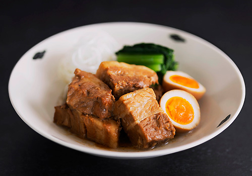 大きめにカットした国産豚バラ肉を京風の甘めのタレでじっくり煮込み、柔らかな食感に仕上げた当社オリジナルの角煮が入荷しました。ご飯のお供にもお酒のおつまみにもふさわしい、絶妙な甘辛バランス。そのままでも、サラダ、チャーハン、どんぶりに入れても美味しくいただけ、アレンジが簡単なのも人気の秘密です。