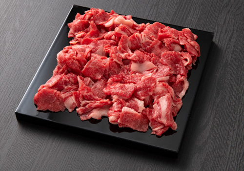 主婦の強い味方。黒毛和牛をリーズナブルに楽しめ、どんな料理にも使える万能な切り落としです。霜降り好きの方におすすめしたい、和牛切り落としのクラシタが大好評です。クラシタとは、肩ロースの中でもキメが細かく美しい霜降りが入っており、柔らかくて食べ易い部位です。脂が適度に入っており、和牛本来の旨味と脂の甘味をお楽しみいただけます。