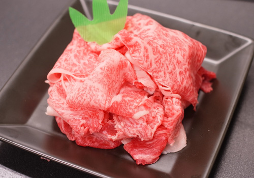 普段はA5特撰黒毛和牛すき焼き・しゃぶ用(ロース/肩ロース)500gを10,000円(税込)で販売していますが、今回、特別にA4とA5をブレンドした国産黒毛和牛すき焼き・しゃぶ用(ロース)500gを5,900円(税込)でご用意しました。霜降りが美しく入った、上質なロース肉500gをお得な価格でお楽しみください。