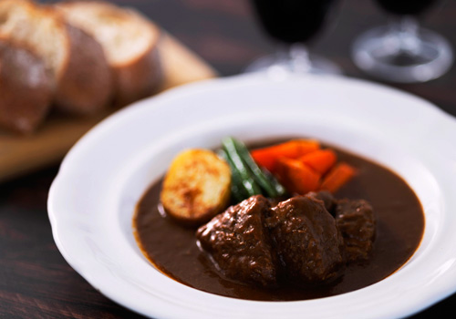 厳選された和牛と芳醇な赤ワインが織りなす至極の「銀のビーフシチュー」を限定販売。一頭一頭丁寧に育てられた国産黒毛和牛を80gも贅沢に使用。厳選された和牛の芳醇な香りと、とろけるような柔らかさは、まさに至福の味わい。口に入れた瞬間に、溢れ出す肉汁と深い旨味が、あなたを美食の旅へと誘います。