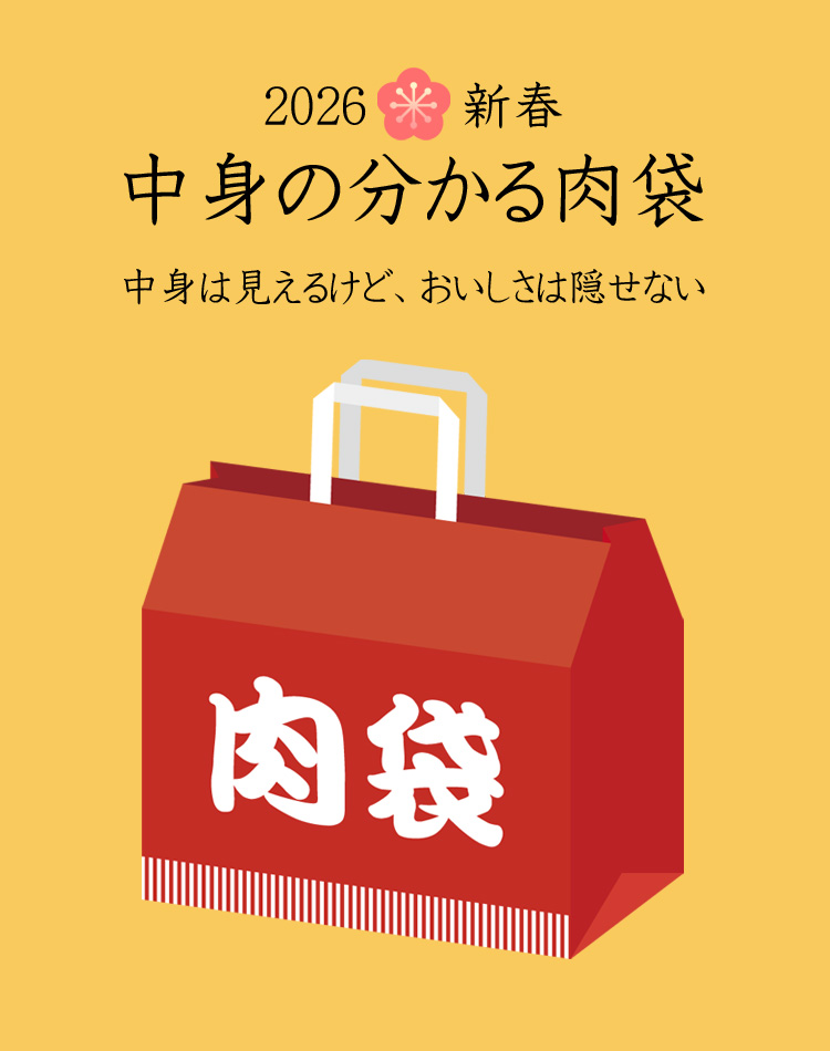 「新春 中身の分かる肉袋」完売後に多くのご要望を頂きまして、「2024 立春 中身の分かる肉袋」をご用意しました。内容もボリュームも自信を持ってお届け。当社が厳選するおすすめ商品をたっぷりお楽しみください。