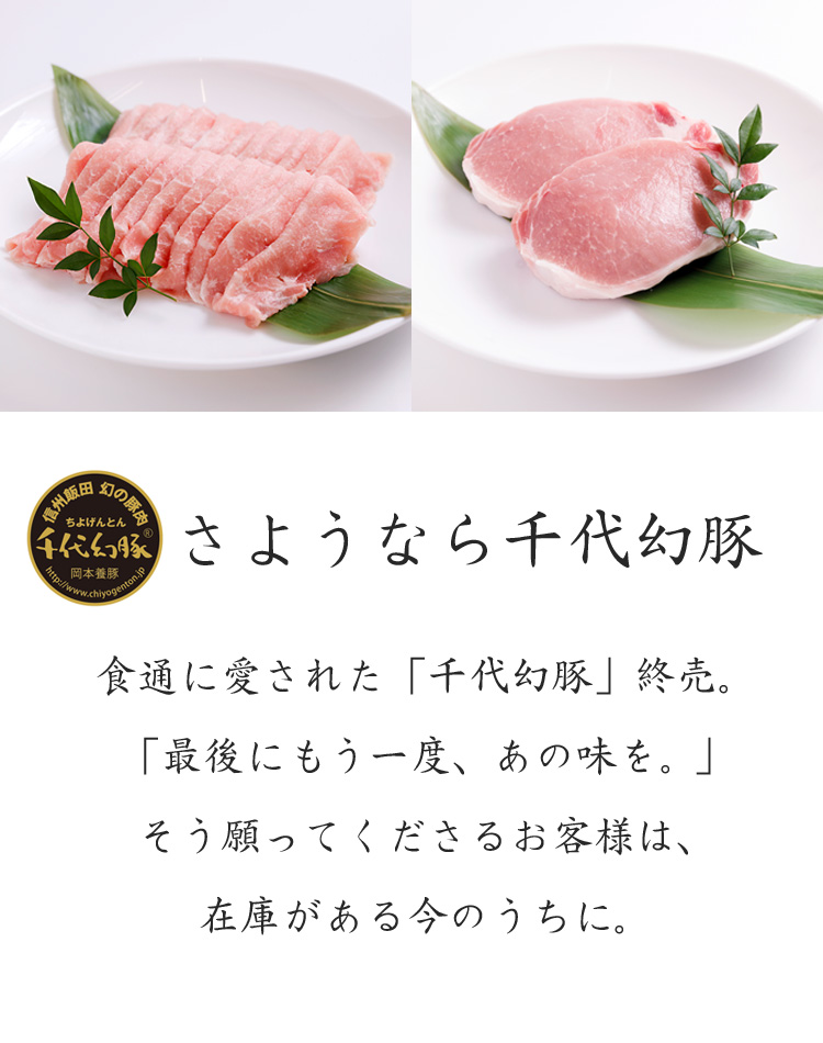 完売していました千代幻豚のロースとんかつ用が数量限定で入荷しました。揚げたてのとんかつを包丁でザクっと切れば、中から溢れ出す肉汁・・・。国産、それも広大な長野の地で育った千代幻豚の脂の甘味は格別です。一口噛めば、お口の中で広がる豚肉の旨味、そして鼻から抜ける豊潤な香りは、食べるほどに食欲を掻き立てます。