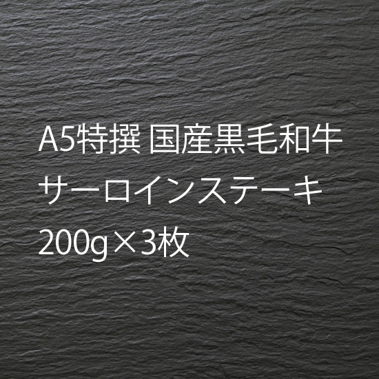A5特撰国産黒毛和牛サーロインステーキ 200g×3枚、ステーキたれ小袋×3