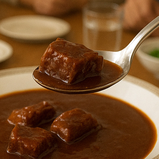 長時間じっくりと煮込むことで、お肉はスプーンで切れるほど柔らかい食感に仕上がっています。とろけるような柔らかさをぜひご体感ください。お好みの野菜を加えたり、マッシュポテトを添えたりと、アレンジ自在なのも魅力です。自分だけのオリジナルビーフシチューを作り、特別な時間を演出しましょう。
