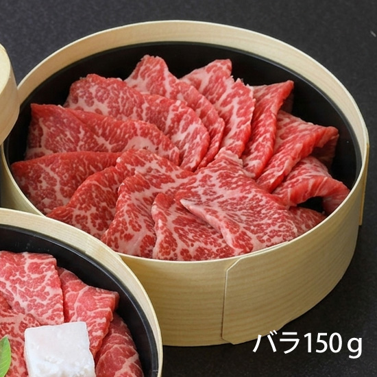 モモ肉150g、バラ肉150g、合計300gを、贅沢なわっぱに詰め、まるで宝石箱のような美しさに仕上げました。