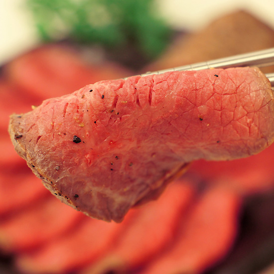 通常販売でも大人気!ローストビーフ作成時に出る端っこ部分のセットです。形は不揃いですが、味は一切問題なし。切り分けてサラダやサンドイッチにしたりと、アレンジ自在です。