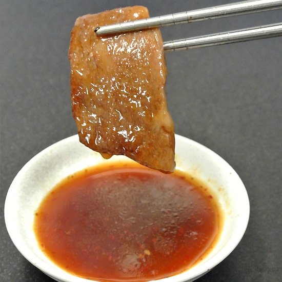 最高の黒毛和牛を知り尽くしたプロが、お肉の旨さを引き出すために開発した特製焼肉のたれです。そのままつける「さっぱり」とした味わいや、絡めて焼くことで「コク濃」の風味になる二段階の味変化を楽しめるのが魅力です。