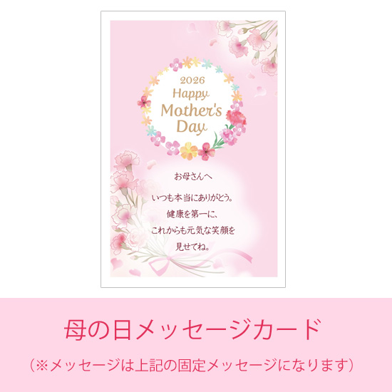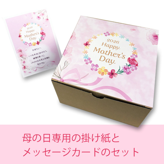 この母の日専用セットは、当オンラインストアで商品をご購入いただいたお客様限定のサービスです。そして、母の日ギフトとして発送する場合にのみご利用いただけます(本品のみでの販売はしておりません)。今年の母の日は、いつもと違う、記憶に残るギフトで、お母様へ「ありがとう」を届けましょう!